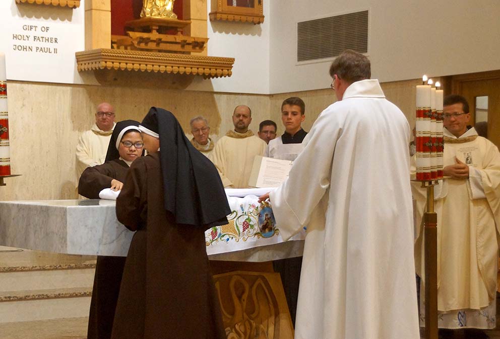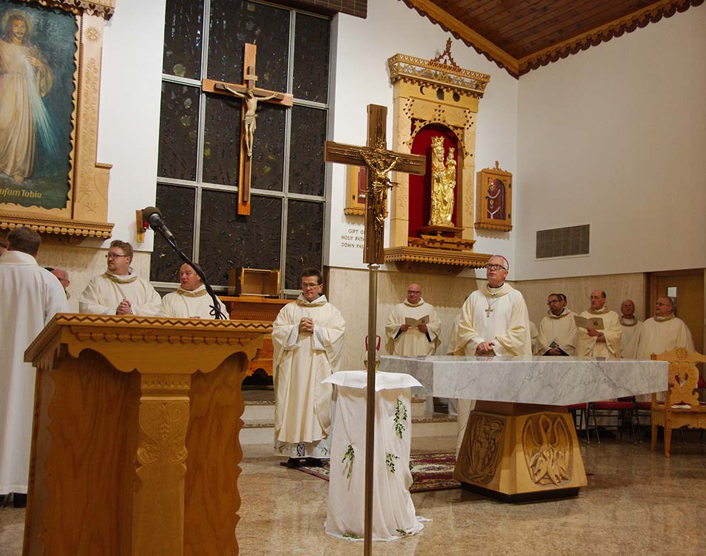 Despite the fact that the church at our monastery was built many years ago, it was never formally consecrated, and for this reason, a general renovation undertaken in the spring of 2015 became an ideal occasion for us to consecrate it. After the renovation was completed, during a Solemn Holy Mass on November 12, 2015, Bishop Donald Hying, the Ordinary of the Diocese of Gary, carried out the consecration of our renovated church.